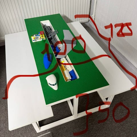 Käytetty Lego pöytä, kaksin istuttava, 2xlego alustaa kiinteänä rungossa.