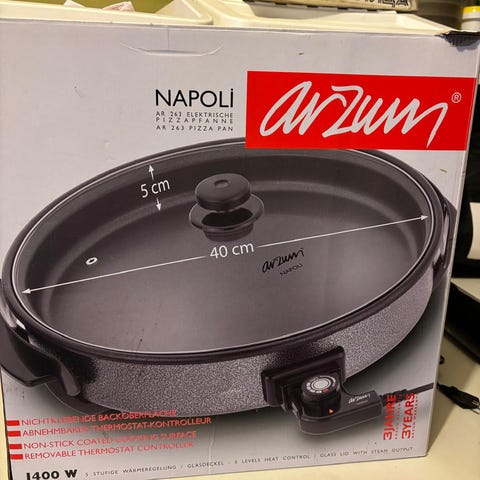 Hyvänkuntoinen, syvä paistinpannu. Merkistä ei tietoa. Itse oon käyttänyt valurautaliedellä. Halkaisija yläreunasta toiseen 24cm. MMM.