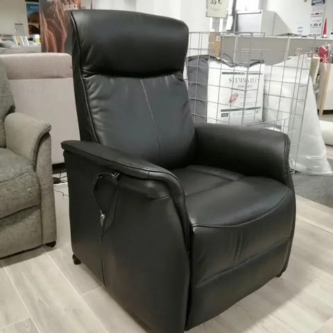 Sähköinen lepotuoli, verhoiluna musta keinonahka. Tuolissa on korkea selkänoja ja pehmustetut käsinojat. Istuinosassa on erillinen pehmuste ja tuolin sivussa näkyy johdolla varustettu kaukosäädin, jolla ohjataan tuolin säätötoimintoja. Käytetty joten käytöjälkiä on pari mutta täysin ehjä muuten.