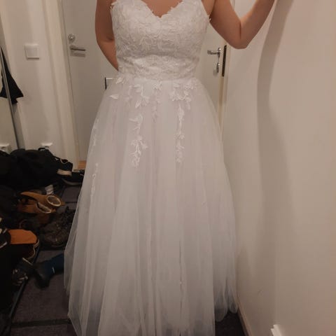 Mekko sopii koolle 36-38. S -M. Menee nyörityksen avulla pienemmälle sekä isommalle morsiamelle.