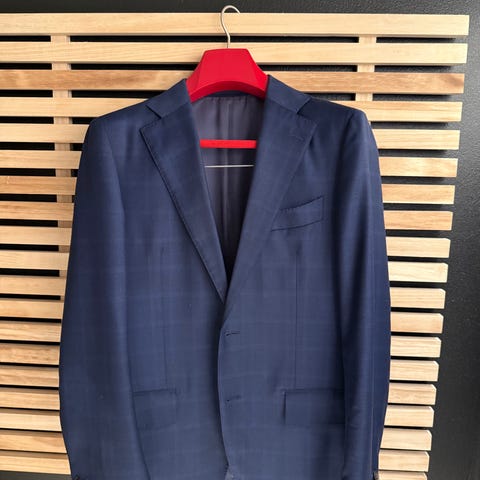 Suitsupplyn leikkaus aika fitti, joten uskoisin että meee 54-kokoiselle kaverille myös. Mitat alla.