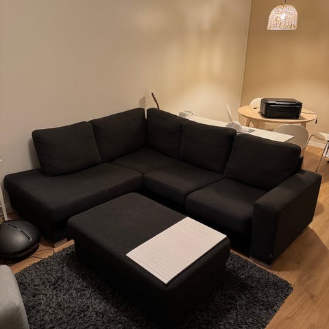 Vaaleanharmaa kulmasohva. Pientä kulumaa kahdessa istuintyynyssä, saa ommeltua piiloon. Näistä tarkemmat kuvat ilmoituksessa. Kaikki päälliset irroitettavia ja pestäviä. Pesty säännöllisesti tekstiilipesurilla.