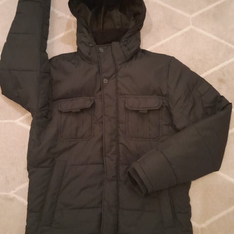 Hyväkuntoinen takki pikkupakkasille ja kevättalveen. Vanuvuori, povitasku, vetoketjullisia taskuja 4 kpl, pituus 70cm, ollut minulla käytössä.