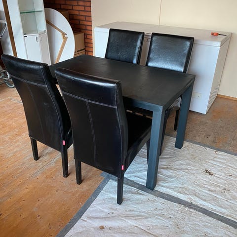 Pöytä siisti, penkeissä enemmän käytön jälkiä. Hiomalla saa uuden veroiset.