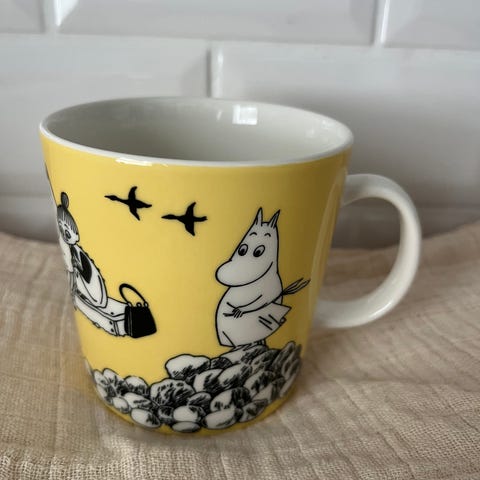 Arabia Muumi muki. Posliininen juomamuki, jossa monivärinen Muumi-aiheinen kuvitus sillasta ja talvimaisemasta. Mukissa on perinteinen korvallinen malli. Sopii kuumille ja kylmille juomille arki- ja kahvihetkiin. Mukin pohjassa Arabia- ja Muumi-merkinnät. Toimitetaan kuvituksellisessa lahjapakkauksessa.