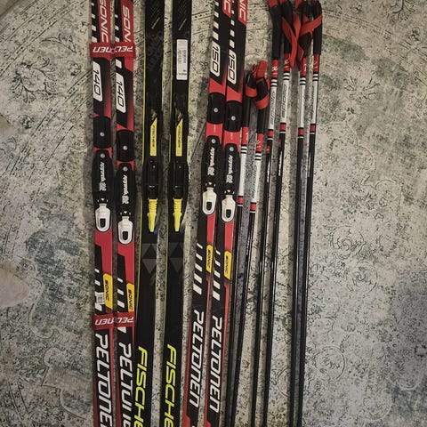 Fischerin 127cm sukset, Fischerin 35 monot ja Apollon sauvat.