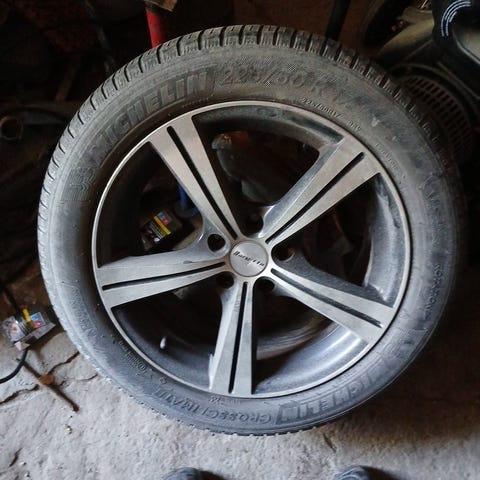 Kulutuspinnaltaan hyvät mutta jonkun vuon vanhat renkaat.