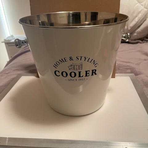 Martini jääastia. Punainen sisäosa ja hopeanvärinen ulkopinta Martini-logolla. Soveltuu juomapullojen tai jääpalojen viilennykseen ja säilytykseen.