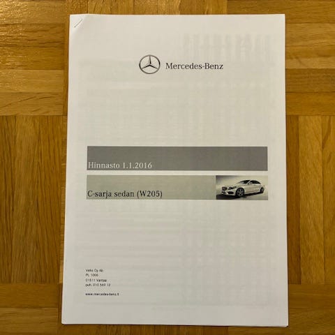 Myydään Vehon hinnasto Mercedes-Benz C-sarja W205 porrasperäiset mallit Launch Edition 10.3.2014