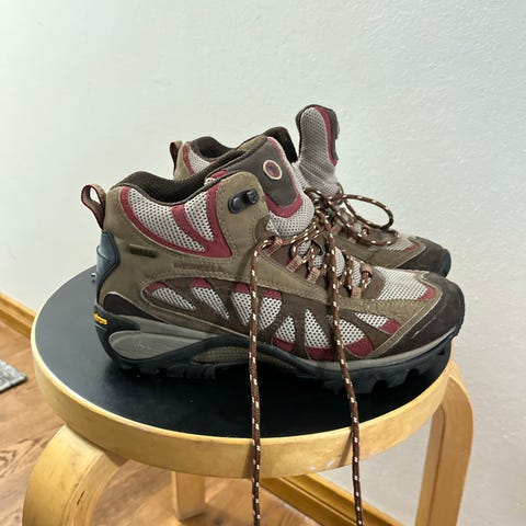 Merrell Vakuum vaelluskengät, koko EU 42 (UK 8). Kenkä naisten mallia joten koko on todellisuudessa mielestäni pienempi kuin ilmoitettu 42. Itselläni kengänkoko 40,5-41 ja nämä olleet ok. Pohjallisen pituus n.265mm.