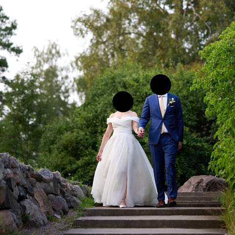 Käytetty Justin Alexander häämekko. Koko M/L. Ollut käytössä 172 cm M kokoisella. Pesemättä. Pesu ostajalle.