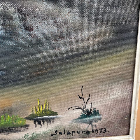 Taulu. Kerimäen kirkko ja kellotapuli. Koko 33x43 cm.