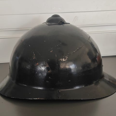 Saksalainen WW1 camo M17 teräskypärä. Koko on 62. Italiaisen kaverini mielestä kypärä on "tuunattu", koska ostin sen Itä-Euroopasta (Latvia)... Siellä kuulemma näitä tehtaillaan. Kuvun sisäpinta on syöpynyt sen verran, että ei näy enää tehtaan merkintöjä (lot number). Valmistajan kokomerkintä on myös heikko, mutta paljain silmin erottaa juuri ja juuri koon 62, mutta ei valmistajan kirjaimia. Nahkaosat ovat todella hikiset ja rasvaiset. Nyt ne on voideltu mehiläisvahalla. Juuri ja juuri uskaltaa nahat kääntää niitä rikkomatta. Kaikki kolme pehmikepussia ovat tallella, mutta en alkanut nauhoja availemaan. Kypärä hieman kiiltää, kun sen öljysin ennen valokuvien ottoa, mutta öljy haihtuu ajallaan. Kokemukseni perusteella sisuksia ei ole koskaan irroitettu yli 100 vuoteen. Niitit katkeaisivat. Nahkaosatkin ovat oikein "kaivautuneet" syvälle, joten on ollut tiukasti päässä juoksuhaudassa. Voin ottaa vaihdossa hyväkuntoisen Suomi-käytössä olleen WW2 sarvikypärän (kokoa 64) ja 1000 euroa kahisevaa. Muuten myyntihinta on 1950 euroa.