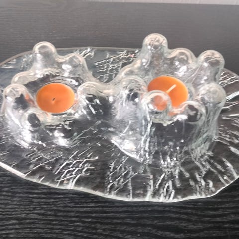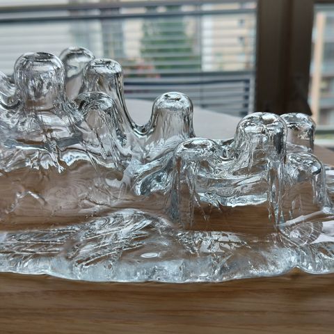 Muurlan jäävuoria muistuttava kristallinen kynttiläjalusta neljälle kynttilälle.