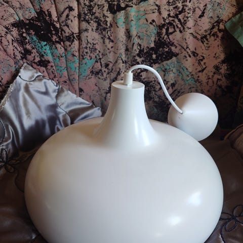 Kattolamppu, ehjä ja toimii. Muutenkin siistissä kunnossa. Kuvun halkaisija 34cm.