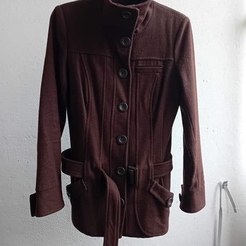 🖤 Hyväkuntoinen villakangastakki irrotettavalla hupulla. Huppu on kiinni napeilla.