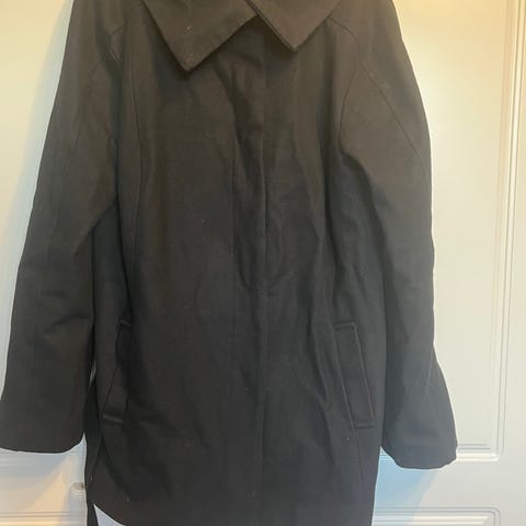 🖤 Hyväkuntoinen villakangastakki korkealla kauluksella. Vyötäröä saa säädettyä nauhalla.