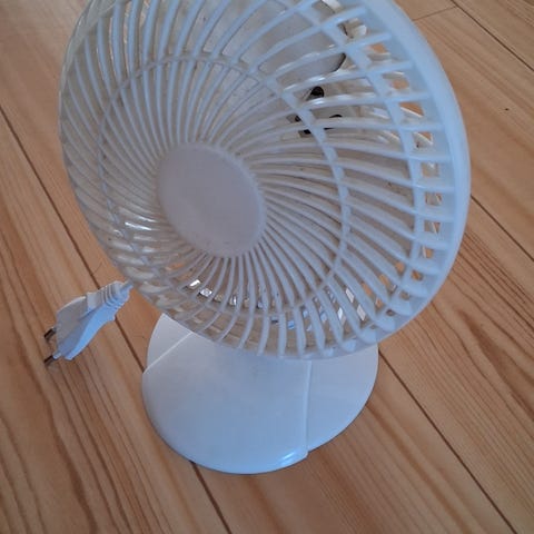 Lalita DF-07 pöytätuuletin. Metallirunkoinen, krominvärinen tuuletin.