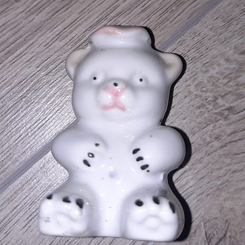 Hyväkuntoinen koriste-esine nallet. Koko näkyy kuvassa.
