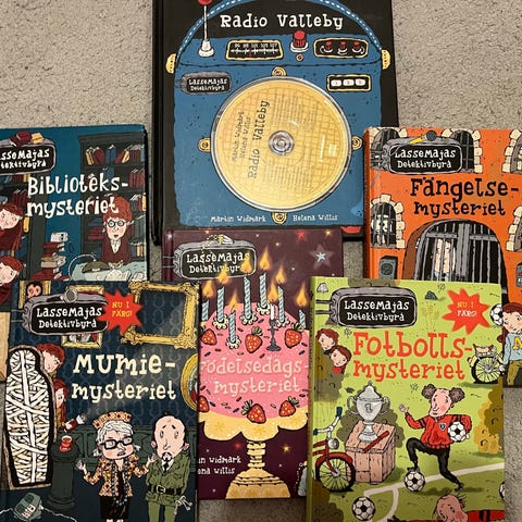 LasseMajas detektivbyrå -bokserie för barn på svenska. Hårdpärmade böcker, bilder med färg. Passar för barn i lågstadie ålder.
