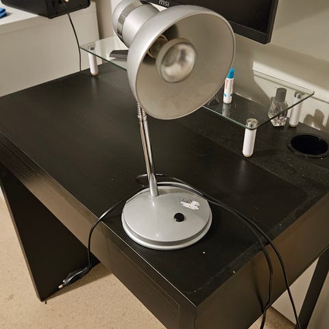 Käytössä ollut, pieniä naarmuja pinnassa. Hyvä valo vaikka yöpöydälle