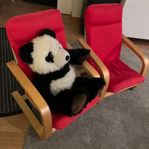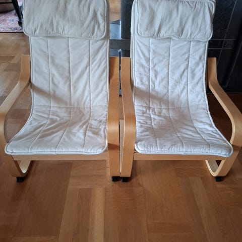 IKEA lasten nojatuoli, jossa vaalea kangasverhoilu ja kaarevat puuvarret. Tuolissa on pehmustettu istuinosa ja erillinen niskatyyny. Sopii lapsen huoneeseen tai oleskelutilaan istuma- ja lepohetkiin. Kuvista näkyy verhoilun väri ja kunto sekä rungon materiaalin sävy. Kaipaa päällinen pesua.