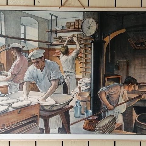 Kaunis koulukäytössä ollut opetustaulu kankureista työssään, Meinhold käsityöläiskuvia