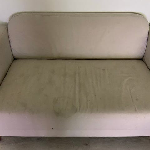 Annetaan kulmasohva/vuodesohva säilytystilalla, jos jollakulla sattuu olemaan käyttöä. Yksi nurkka auki, ja säilytystilan sivussa reikä kuten näkyy kuvasta. Reikä ei atm näy, kun säilytystila on kiinni. Joitain tahroja on myös. Koiratalous.