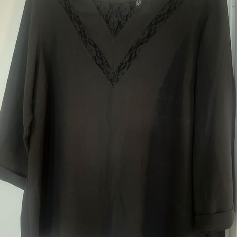 Musta pusero jossa takana röyhelö somiste avarassa takaosassa. Kiva vesitetty kangas.