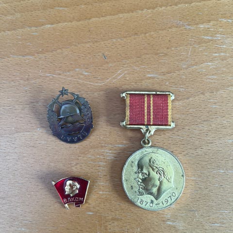 Sekalainen kokoelma erilaisia merkkejä .Mukana on useita metallisia ja emaloituja merkkejä eri maista ja organisaatioista, osa teksteillä ja tunnuksilla varustettuja.