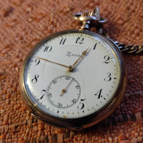 Zenith taskukello Grand Prix Paris 1900. Hopea /800, Koneistossa merkintä 17 jewels. Hyvä keräilykohde . Vedettävä, toimii. Paino n. 98g. Omistajan kaiverrus. Hp. 220€
