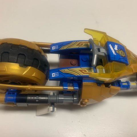 LEGO moottoripyörä rakennussetti. Rakennuspalikoista koottava moottoripyörämalli, jossa on liikkuvia osia, kuten pyörät ja jousituksia muistuttavat rakenteet. Sopii LEGO-rakenteluun ja erilaisiin ajoneuvoaiheisiin leikkeihin tai kokoelmaan. Huomioitava, että setti voi olla koottu useista eri LEGO-osista, eikä alkuperäinen setti tai sen numero ole tiedossa.