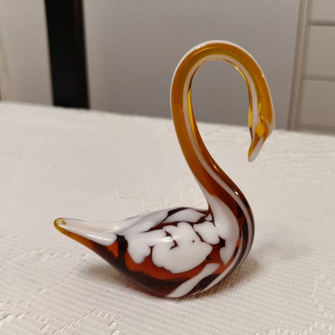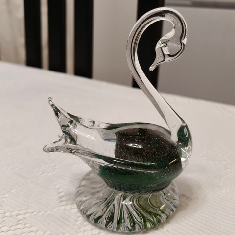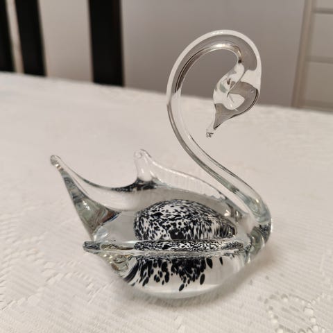 Kaunis lasijoutsen. Uskoisin, että tämäkin on Muurlan valmistama, vaikka tarraa ei enää ole, mutta tämä on täysin saman mallinen, kuin toinenkin myyntiin laittamani musta lasijoutsen.
