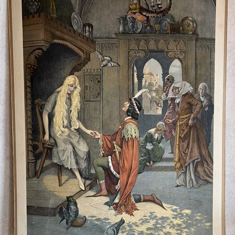 Ihana koulukäytössä ollut opetustaulu lapsista kesäisissä puuhissa kukkien ja heinien kanssa