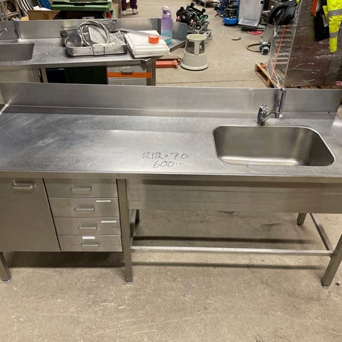 Rst-pöytä isolla altaalla, sakkakupilla ja käsisuihkulla.