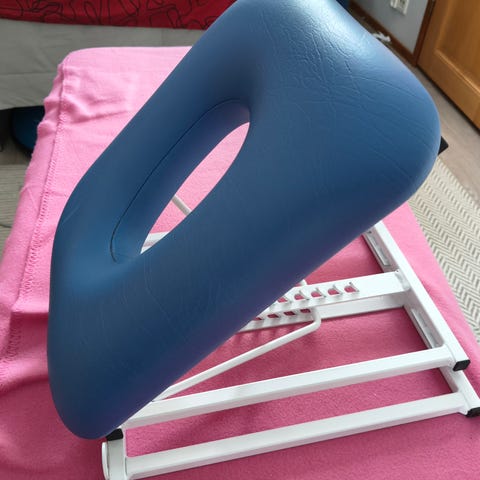 Vanha, mutta moitteeton niskahierontatuki. Kaksi säätötasoa ja useita korkeusvaihtoehtoja. Pinta ehjä eikä kovettumia ole!