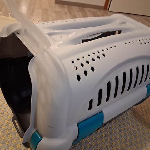 Tukeva ja kestävä muovinen kuljetusboksi lemmikeille. Eturitilä pinnoitettua metallia. Ollut käytössä normaalikokoisella mäyräkoiralla täysikasvuisuuteen asti, jolloin käynyt ahtaaksi.