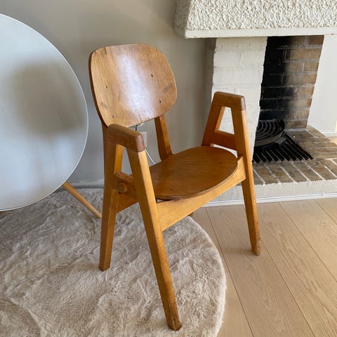 Tapiovaaran oppilastuoli, kohtalaisessa kunnossa. Kannattaa kuvia zoomailla, niin näkee kulumat ym.