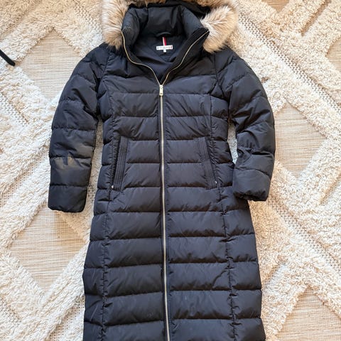 Tommy Hilfiger pitkä naisten takki koossa S/M. Väri beige. Materiaali 100 % polyesteriä. Takissa on pitkä helma, edessä vetoketjukiinnitys ja kiristettävä vyötärönyöri. Hupullinen malli, jossa pitkät hihat. Sopii arkeen ja ulkoiluun leudommille säille.