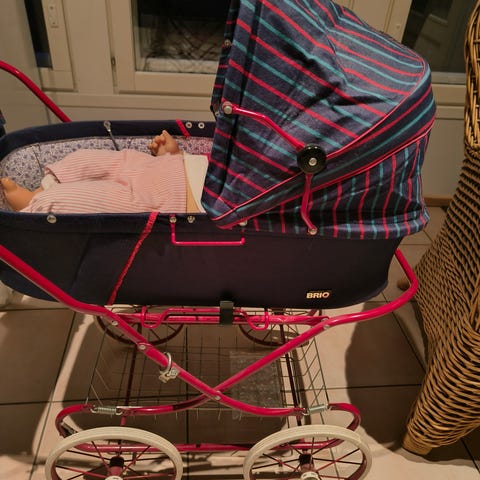 Myydään hyvässä kunnossa olevat pinkit nukenvaunut + matkarattaat ja nukke.