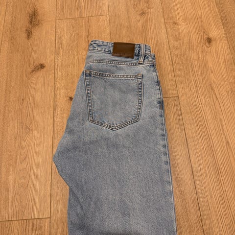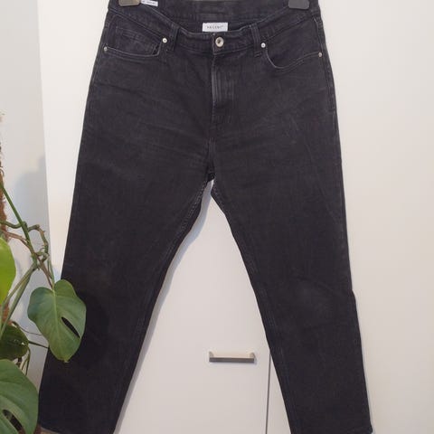 Kerran käytetty ja kerran pesty. Meni pesussa kasaan yllättävän paljon, joten todellinen koko n. W33 Lahkeet lyhennetty ja sisäsauma nyt n. 70-72cm.