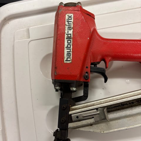 Käytetty kotimainen metallinen järjestelmänaulakko julkitilakäyttöön.