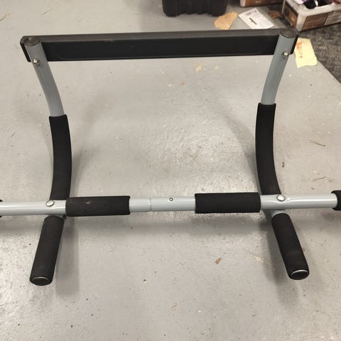 Ovenkarmin päälle asennettava leuanvetotanko. Väriltään vihreä–musta, pehmustetut otepinnat useilla oteleveyksillä.