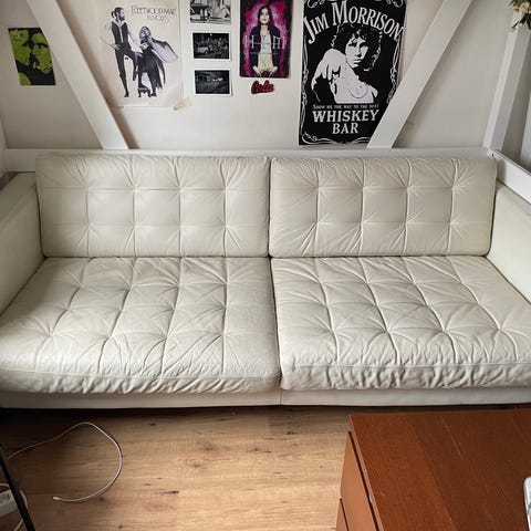 Pieni 2 hengen sohva, sanoisin ilman mittanauhaa alle 1,5m leveä.
