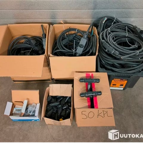 Laaja erä sähköasennuksissa käytettäviä suojalaitteita ja keskukseen asennettavia komponentteja. Soveltuu sähköasentajalle, urakoitsijalle, varastoon tai jälleenmyyntiin.