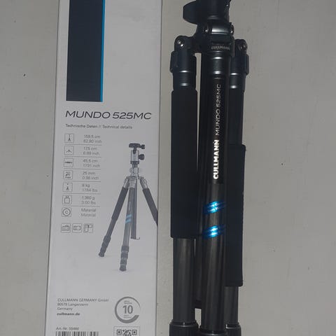 Maximum height 160cm, 134cm without center column. Column reversible! Upper leg diameter 28.6mm (comparable to Gitzo series 2 in terms of stability). Weighs 1.58kg according to manufacturer. Big locks, easy to work with gloves! Very good for spotting scopes, too. Comes with everything on the pictures.
