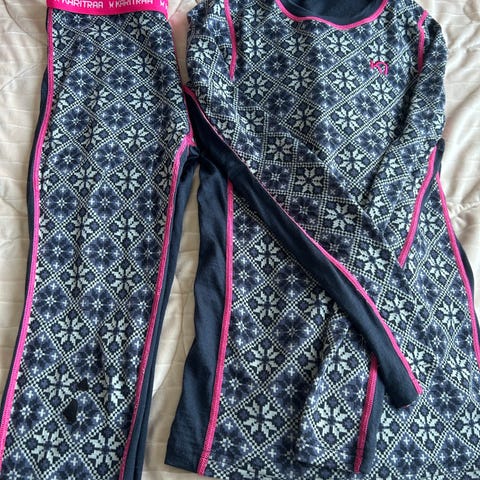 Kari traan kerrasto koko 164. Housujen polvissa pienet langanpurkaumat, paidasta en löytänyt mainittavaa. Selkäpuoli yksivärinen. Koiratalous ja hajusteettomat pesuaineet.