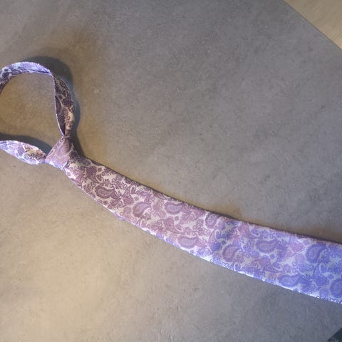 Solmion pituus 145 cm, levein kohta 9,5 cm, kapea osa 4,5 cm. Materiaali polyesteriä.