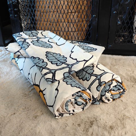 Uusi Marimekon Maalaisruusu pussilakana ja tyynyliina.