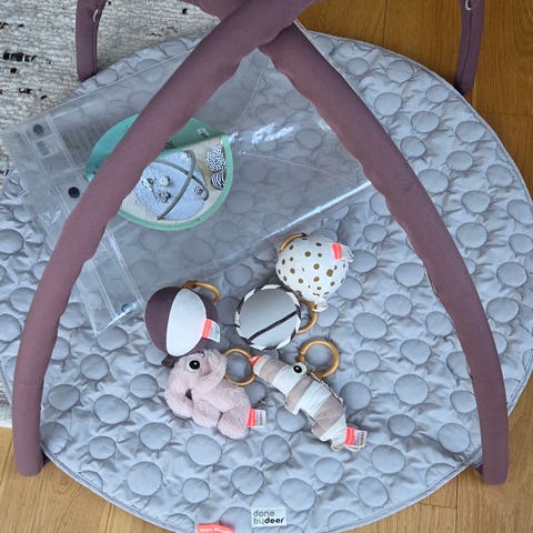Done by Deer leikkikaari vauvalle. Tosi siisti kunto. Ainoa moite, jonka löysin, on linnun kiinnitysnauhassa, ks kuva. Ei haittaa käyttöä. Tarkemmat tiedot näkyy pakkauksessa.